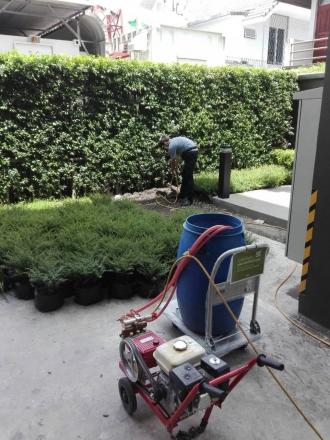 เจ้าหน้าที่ให้บริการด้วยวิธีการฉีดพ่นสารเคมีหรือการใส่สารเคมีผง ที่มีประสิทธิภาพสูงสำหรับการป้องกันกำจัดปลวกในจุดที่พบการเข้าทำลายของปลวกและจุดที่เสี่ยงต่อการเกิดปัญหา เช่นบริเวณที่มีความชื้นสูง พื้นที่เงียบสงบ ขอบบัว วงกบ ฝ้า เพดาน รอยแตกร้าว ซึ่งการใช้สารเคมีชนิดใดนั้นขึ้นอยู่กับความเหมาะสมของสภาพพื้นที่